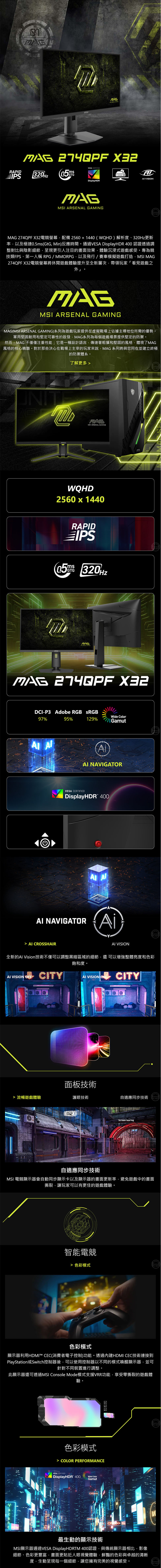 MSI 微星 MAG 274QPF X32 電競螢幕 27吋 320Hz 2K 0.5ms 電腦螢幕 遊戲螢幕 液晶螢幕