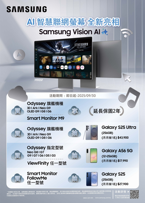 Samsung OLED 提供卓越的亮度,搭配豐富的色彩、色調和對比,確保影像持續清晰明亮。支援 250 nits (典型值) 的亮度和更寬的色域,讓每個畫面都生動細膩。