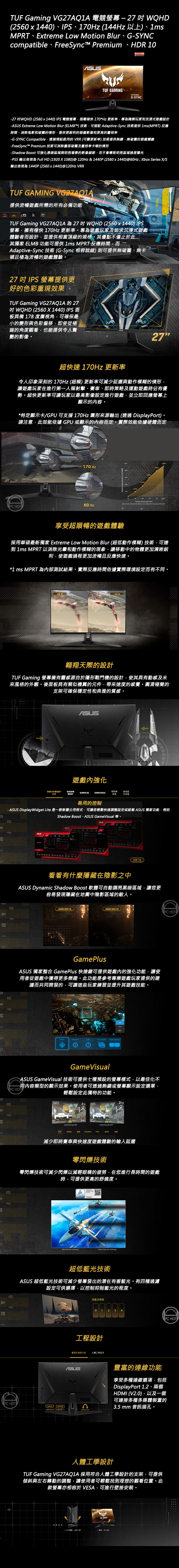 1. 27 吋WQHD (2560 x 1440) IPS 電競螢幕,搭載極快 170*Hz 更新率