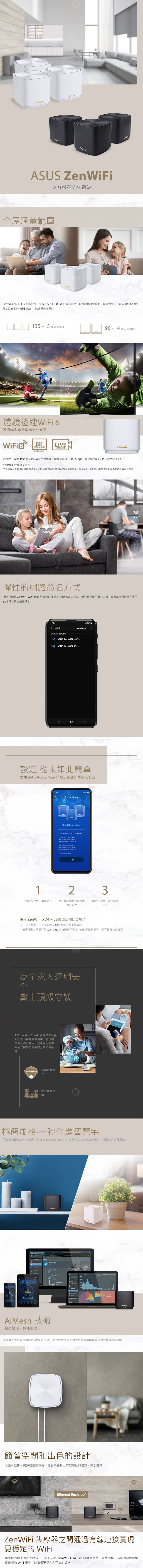 ZenWiFi XD4 Plus 系統統包含三台 AX1800 WiFi 6路由器,具備獨特的技術以提供超快速、穩定且安全的 WiFi 連線 — 無論屋內或屋外!
