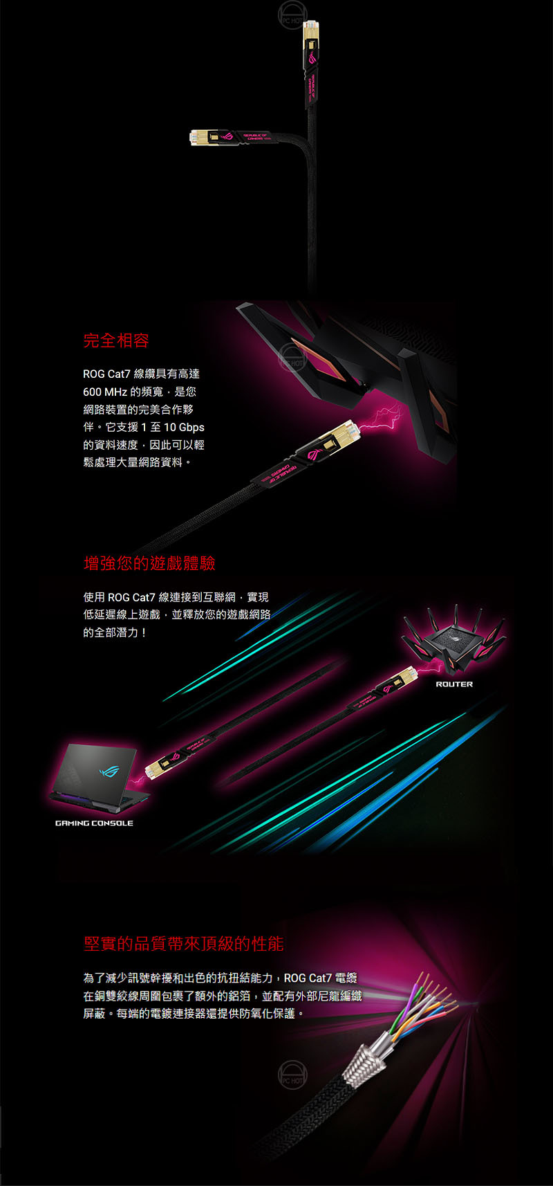1. FULFILL EXTREME ROG FAMILY:嵌入式引人注目的 ROG 設計 — 尼龍編織雙重保護,搭配 ROG CAT7 線的高性能形象。