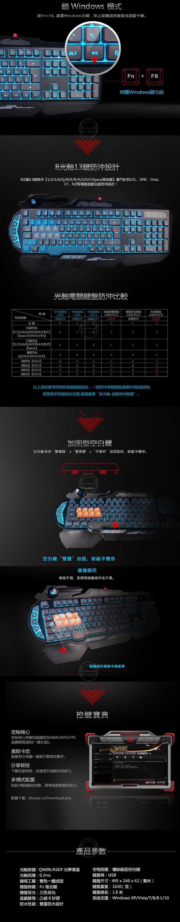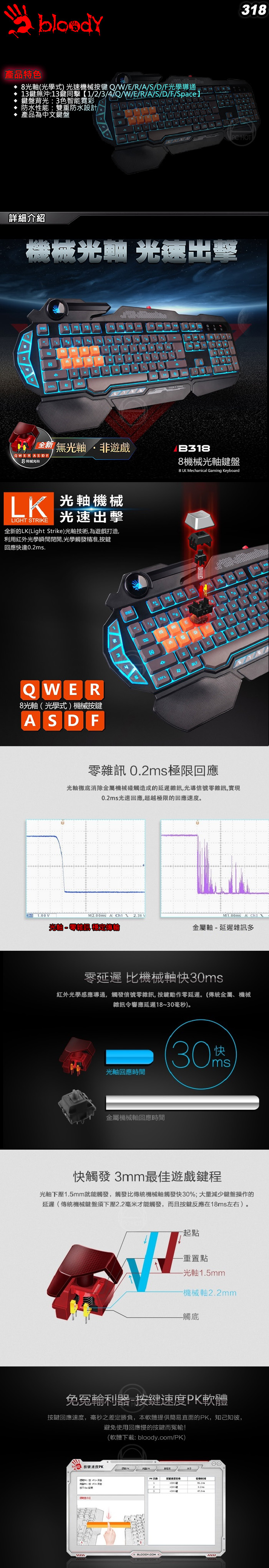 1、8光軸(光學式) 光速機械按键 Q/W/E/R/A/S/D/F光學導通