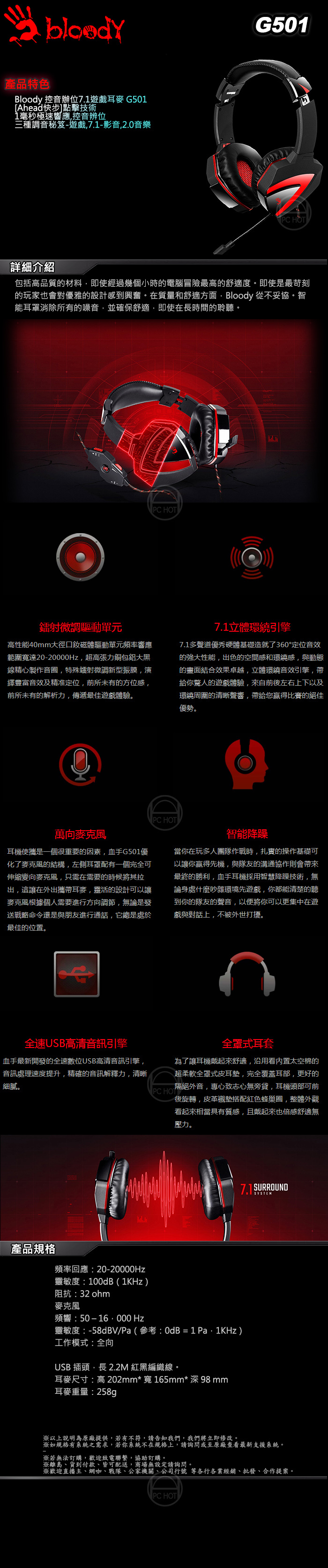 1、Bloody 控音辦位7.1遊戲耳麥 G501