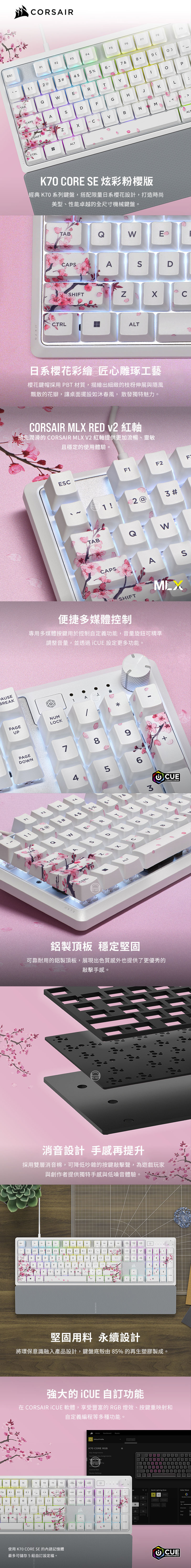 採用獨家CORSAIR線性紅軸,軸經出廠潤滑降低內部結構摩擦,提供了順暢敲擊手感。