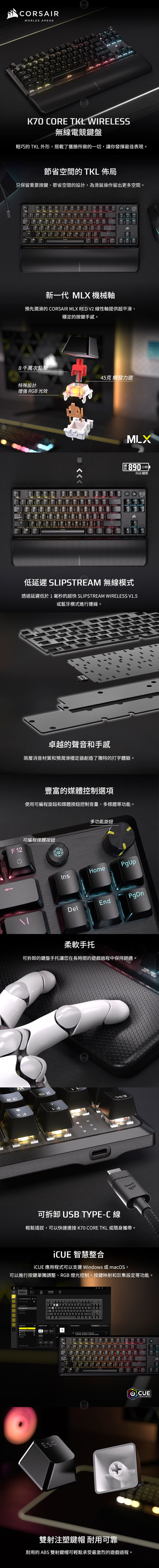 輕鬆插拔,可以快速連接K70 CORE TKL或隨身攜帶。