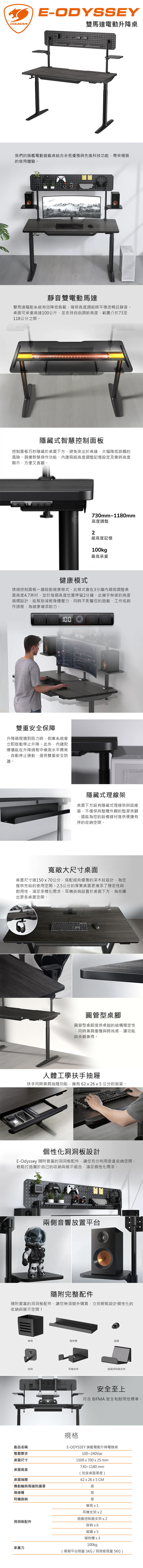 產品名稱:E-ODYSSEY 旗艦電動升降電競桌