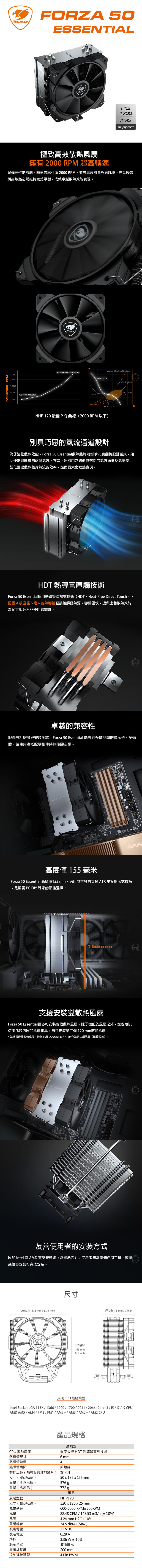 FORZA 50 ESSENTIAL 單塔散熱器,是針對中高階需求所設計的 CPU 塔式散熱器,搭配高性能風扇,提供精湛散熱表現,適合對散熱有基本需求的使用者。