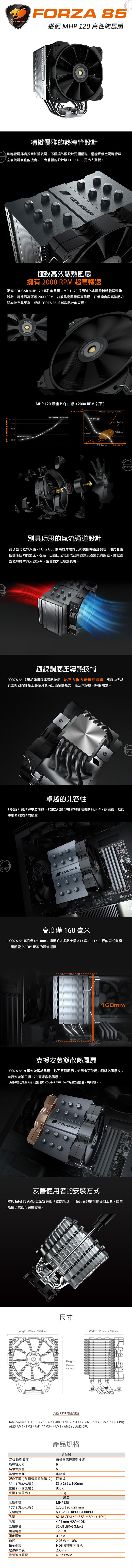 系列名稱:Cougar FORZA 85 單塔散熱器