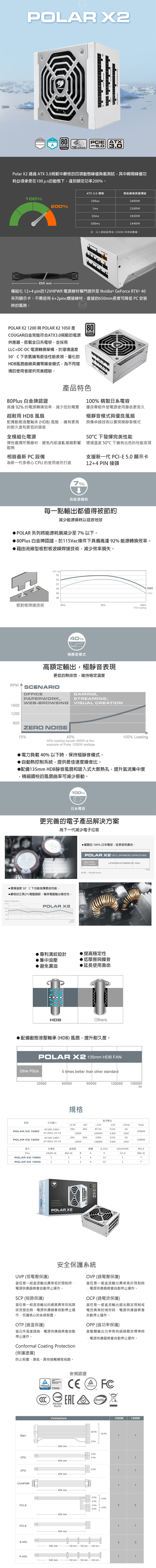Polar X2 通過 ATX 3.0規範中嚴格的四項動態峰值負載測試,其中瞬間峰值功耗必須承受在100μs的動態下,達到額定功率200%。