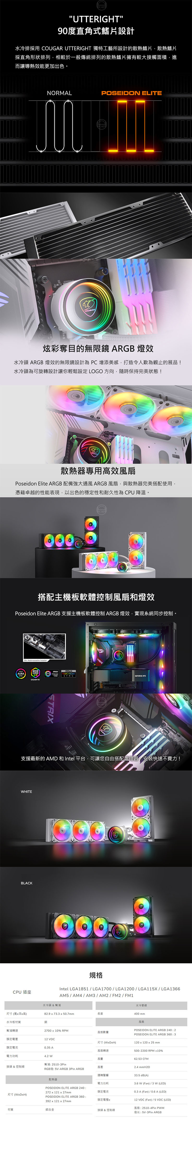 Poseidon Elite ARGB 散熱器隨附最新處理所需的安裝配件,支援 AMD 和 Intel CPU 插座,安裝快速不費力!