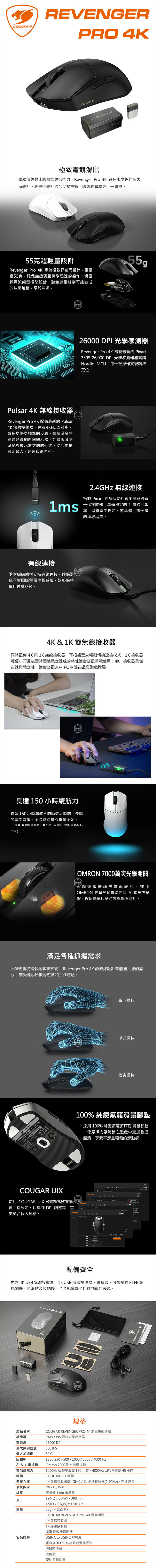 產品名稱 COUGAR REVENGER PRO 4K 無線電競滑鼠
