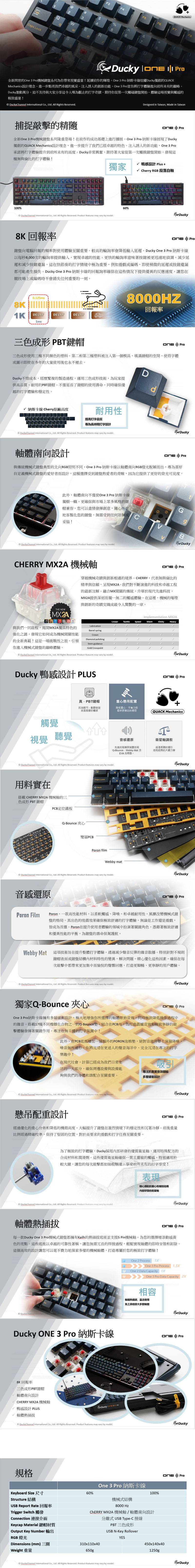 全新問世的One 3 Pro機械鍵盤系列為你帶來視覺盛宴!延續前作的輝煌,One 3 Pro 納斯卡線炫耀Ducky獨創的QUACK Mechanics設計理念,進一步點亮我們卓越的風采。注入誘人的創新功能,One 3 Pro宣告將打字體驗推向前所未有的巔峰。Ducky激動萬分,迫不及待與大家分享這令人嘆為觀止的打字奇蹟,期待你從第一次觸碰鍵盤開始,體驗這場視覺與觸感的極致盛宴!