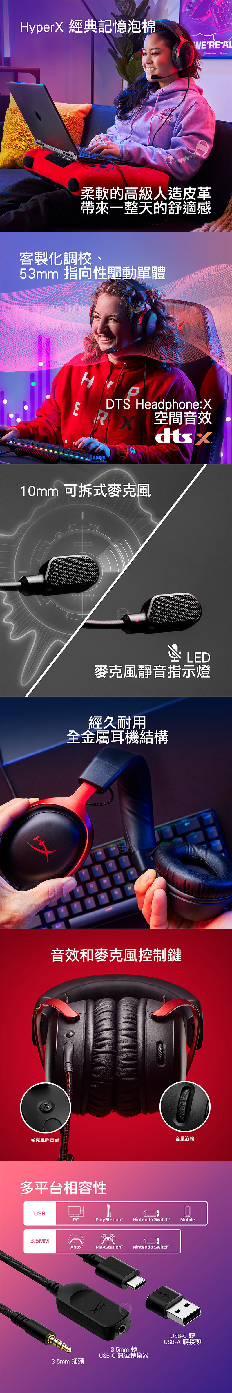 HyperX Cloud III 是一代傳奇 Cloud II 的全新進化版,Cloud II 的舒適性、高音質以及耐用度向來享譽盛名。頭帶與耳墊採用 HyperX 最經典的記憶泡棉,舒適服貼,是長時間佩戴著玩遊戲的完美選擇。搭配全新調校的 53mm 指向性驅動單體,帶來最佳聆聽感受。升級版 10mm 麥克風,無論是遊戲內語音還是通話,都能清晰收音。耳罩上簡單操作的控制鍵可讓您快速地將麥克風調成靜音,或是調整耳機輸出音量。LED 麥克風靜音指示燈讓靜音狀態一目瞭然。相容於 PC、PS5、Xbox Series X|S、Xbox One、Nintendo Switch、Mac、行動裝置。在您喜愛的各種平台上都能享受極致舒適與音質。