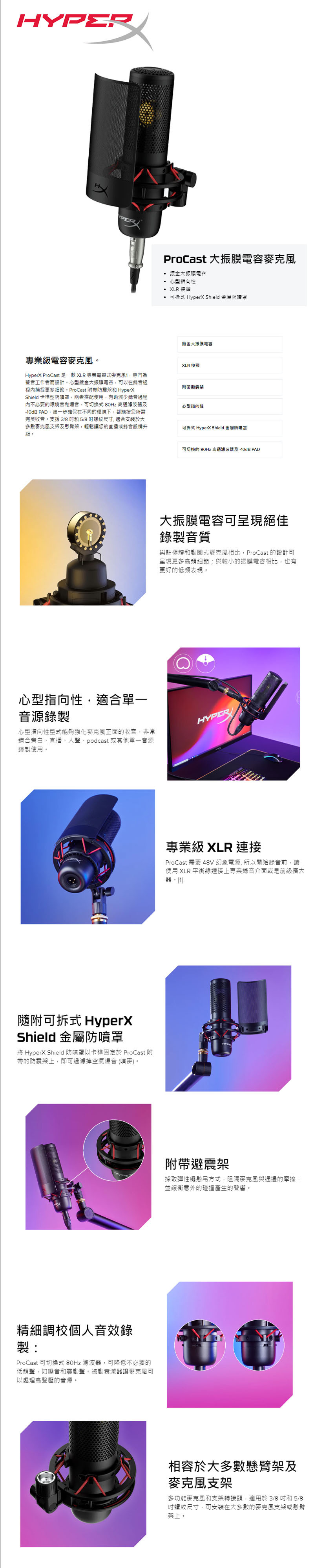 品名:HyperX ProCast 大振膜電容麥克風 (XLR接頭)