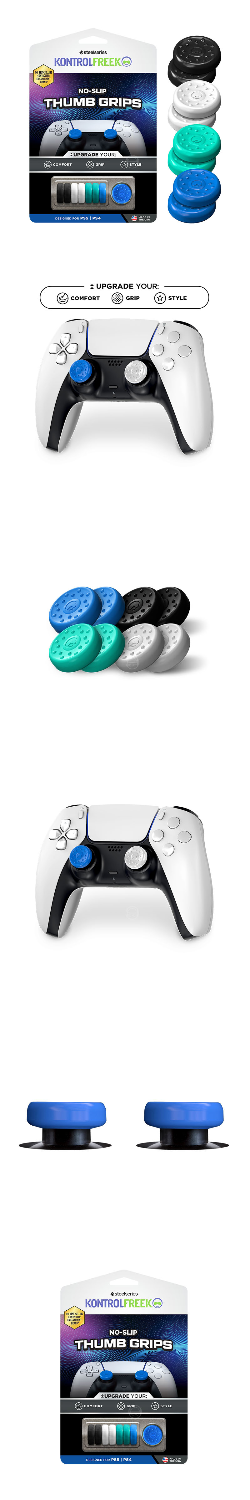 適用於 PlayStation 的防滑拇指握把採用專有橡膠材質製成,可為您玩的每場遊戲提供更多抓地力、舒適度和控制力。超柔軟的拇指握把在激烈的遊戲過程中保持原位,並且耐用且抓地力強。