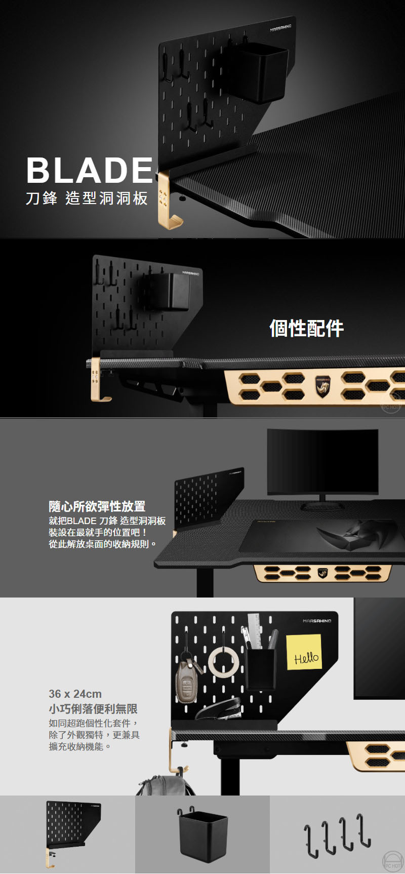 就把BLADE 刀鋒 造型洞洞板裝設在最就手的位置吧!從此解放桌面的收納規則。