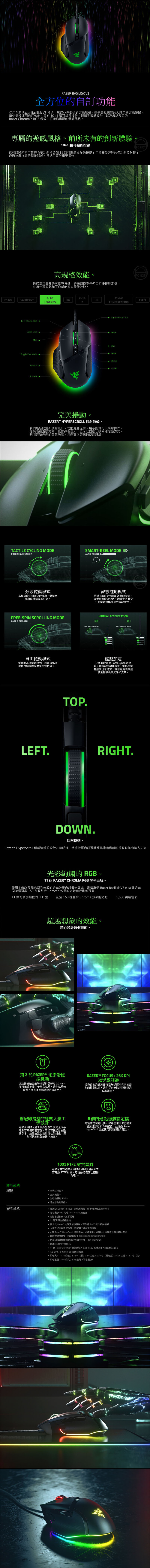 Razer(雷蛇)為世界領先的電競品牌,是全球唯一擁有專用遊戲使用者介面研發實驗室的遊戲硬體公司,多年來不斷致力於為玩家研發設計最好的遊戲產品,我們堅信好的產品是需要基於科技、全面人性化設計以及人體工程學研究,並經過頂尖職業玩家的測試。