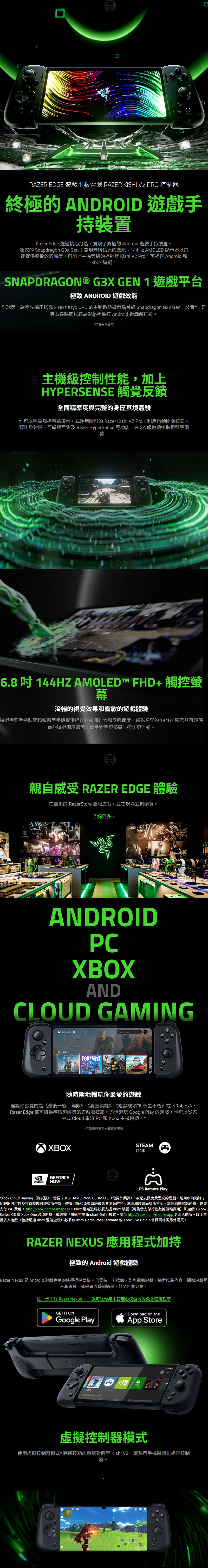 獨家的 Snapdragon G3x Gen 1 實現無與倫比的效能、144Hz AMOLED 顯示器以高速提供極致的清晰度,再加上主機等級的控制器 Kishi V2 Pro,可相容 Android 和 Xbox 遊戲。