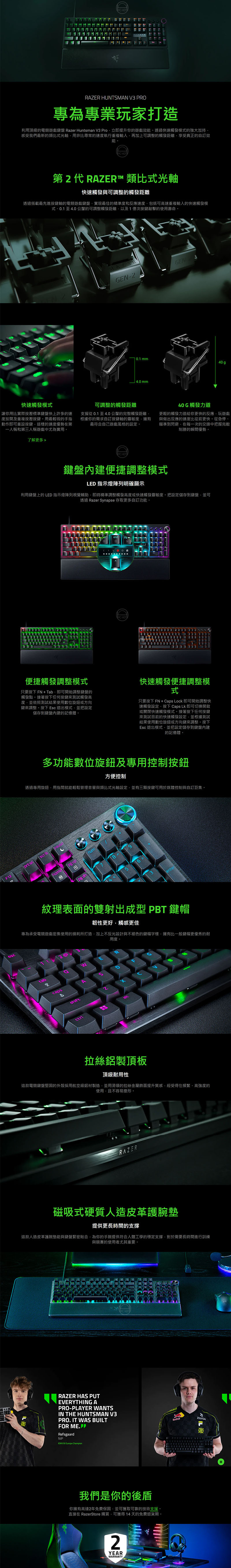利用鍵盤上的 LED指示燈列輔,即時精準調整觸發高度或快速觸發靈敏度把設定儲存到鍵盤,並可透過Razer Synapse 存取更多自訂功能。