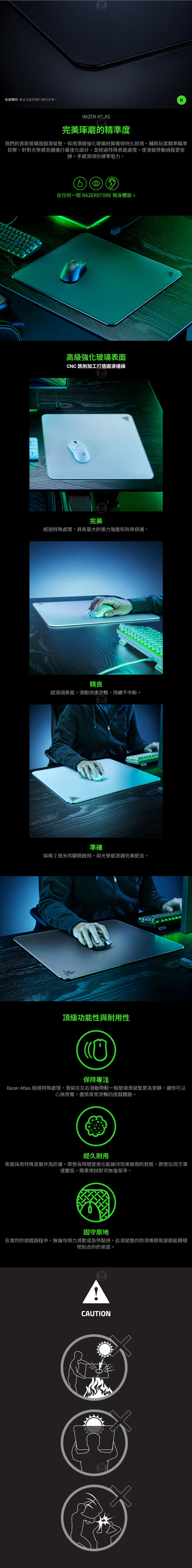 Razer Atlas 經過特殊處理,滑鼠在左右滑動時較一般玻璃滑鼠墊更為安靜,讓你可以心無旁騖,盡情享受流暢的遊戲體驗。