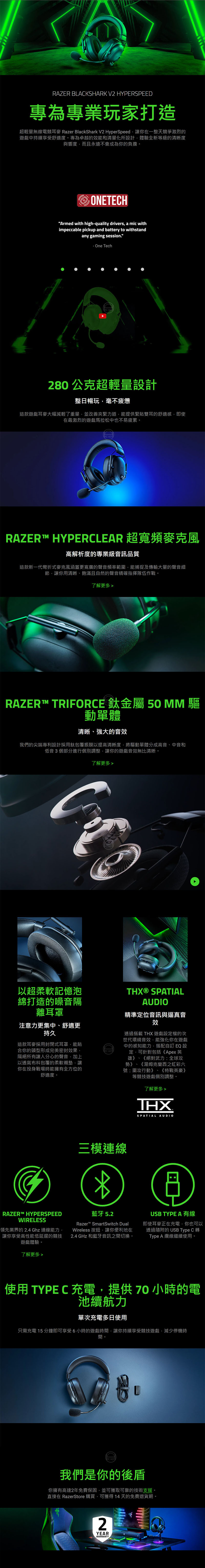 超輕量無線電競耳麥 Razer BlackShark V2 HyperSpeed,讓你在一整天競爭激烈的遊戲中持續享受舒適度。專為卓越的效能和清量化所設計,體驗全新等級的清晰度與響度,而且永遠不會成為你的負擔。