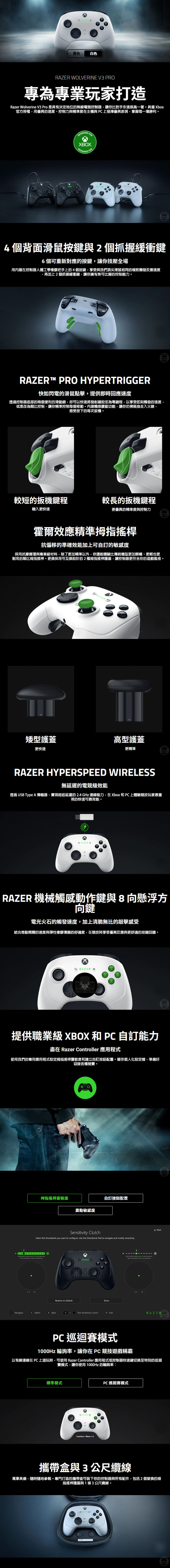 Razer Wolverine V3 Pro 是具有決定地位的無線電競控制器,讓你比對手永遠棋高一著。具備 Xbox 官方授權,用優異的速度、控制力與精準度在主機與PC上發揮優異表現,掌握每一場勝利。
