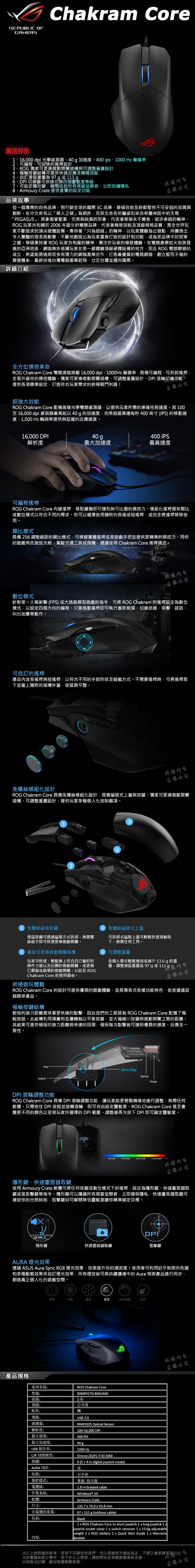 1、16,000 dpi 光學感測器、40 g 加速度、400 ips、1000 Hz 輪循率