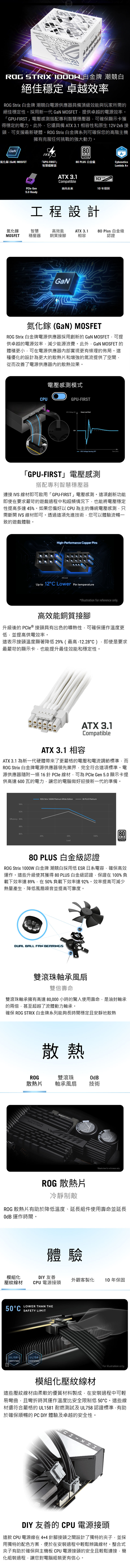 6. ATX 3.1 相容:ROG Strix 白金牌符合 ATX 3.1 標準,可增強電壓和電流調節。