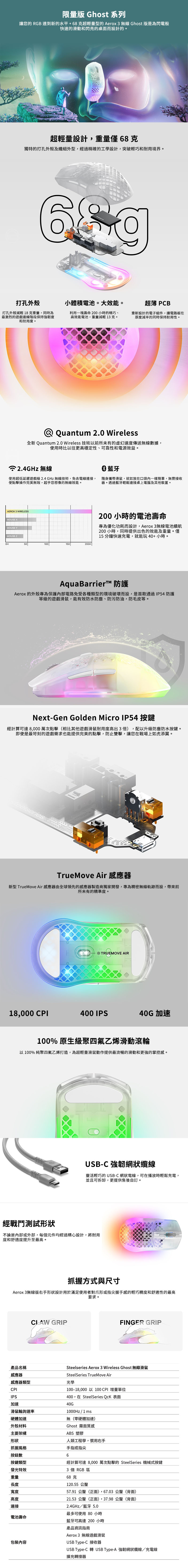 1、超輕量型設計,重量僅 68 克,讓您以輕鬆最快的速度遊戲