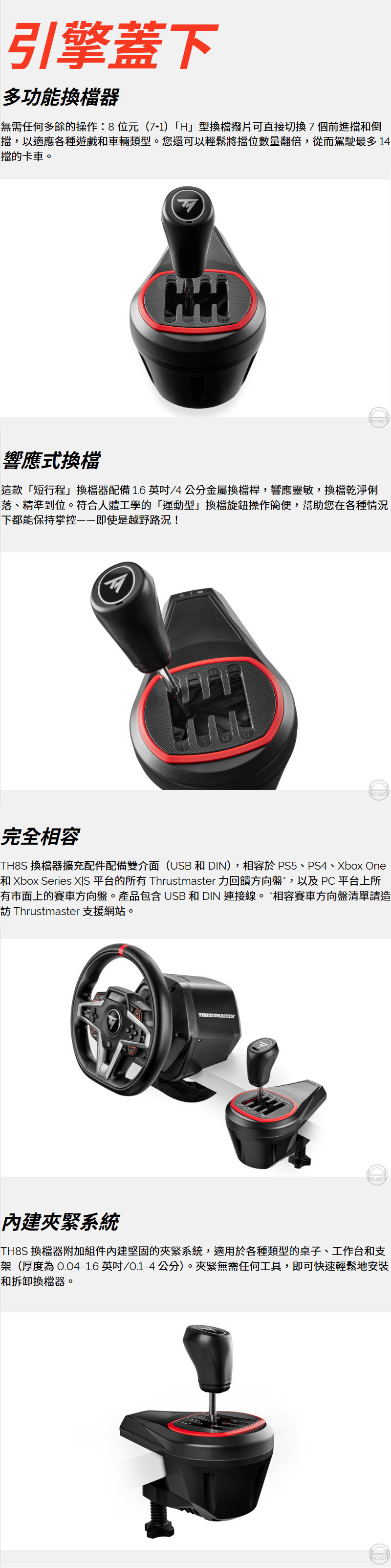 1.多功能換檔器:8個檔位,適用於所有類型的車輛(拉力賽車、卡車、GT賽車、NASCAR賽車)。