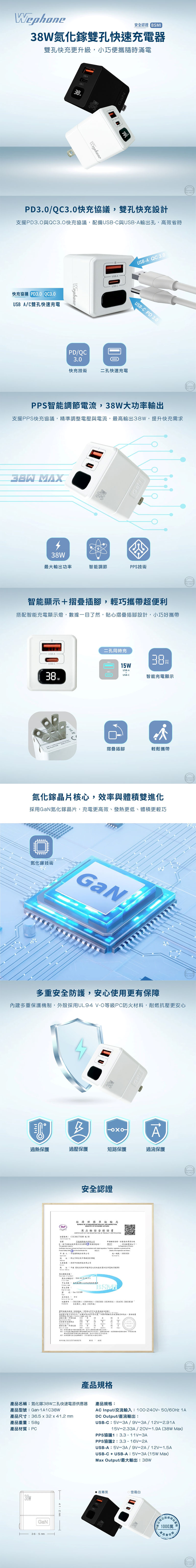 1.PD3.0/QC3.0快充協議,雙孔快充設計。
