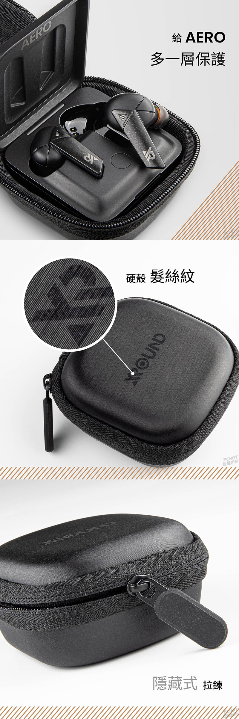 AERO TWS 收納包讓AERO TWS多一層保護,隱藏式拉鍊及髮絲硬殼,質感再升級。