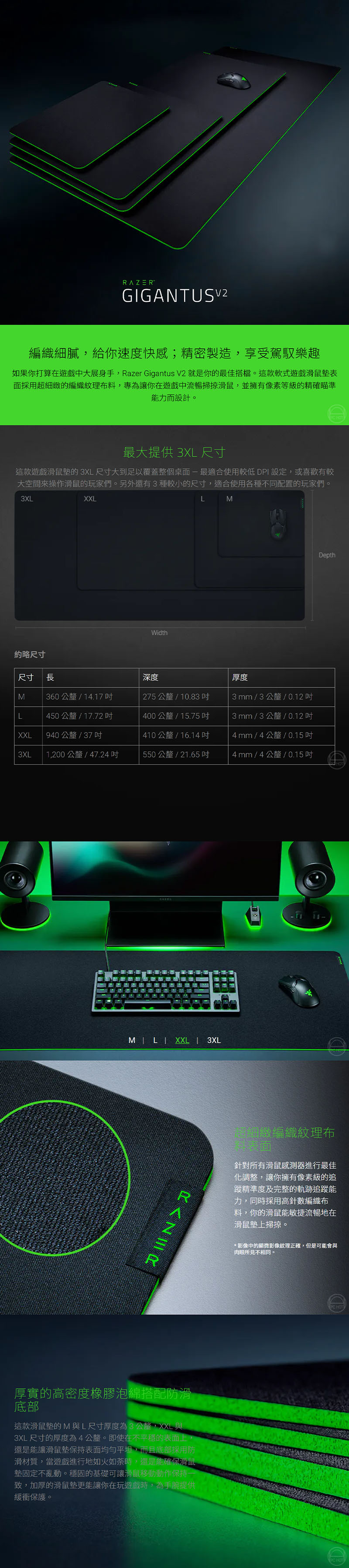 RAZER 雷蛇 Gigantus V2 巨甲蟲滑鼠墊 XXL L M 編織紋理 防滑底部 電競滑鼠墊 鼠墊